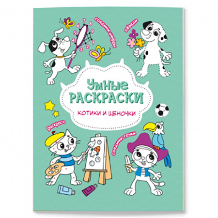 Раскраска по точкам и цифрам " ГеоДом " А5 16л Умные Раскраски Котики и щеночки, обложка- мелованный картон