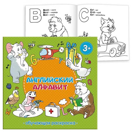 Раскраска " ГеоДом " 22,5*22см 14л Азбука. Английский алфавит, обложка- мелованный картон