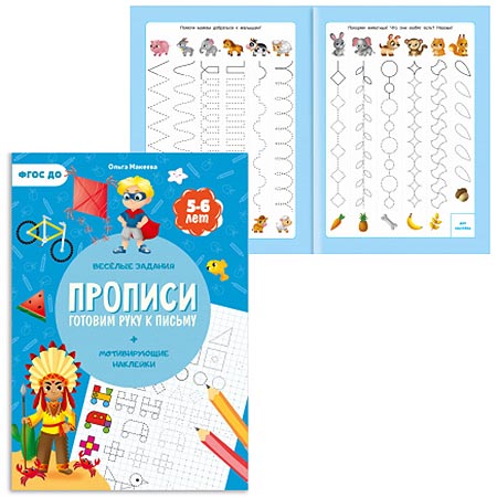 Прописи " ГеоДом " А4 12л с наклейками Учимся весело. Готовим руку к письму, обложка- мелованный картон