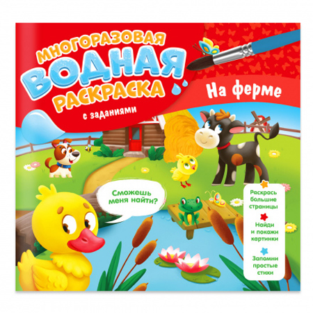 Раскраска водная с заданиями " ГеоДом " 23*24см 6л Раскрась и узнай. На ферме, многоразовая, обложка- мелованная бумага