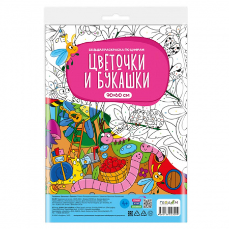 Раскраска-плакат по цифрам " ГеоДом " 90*60см 1л Цветочки и букашки