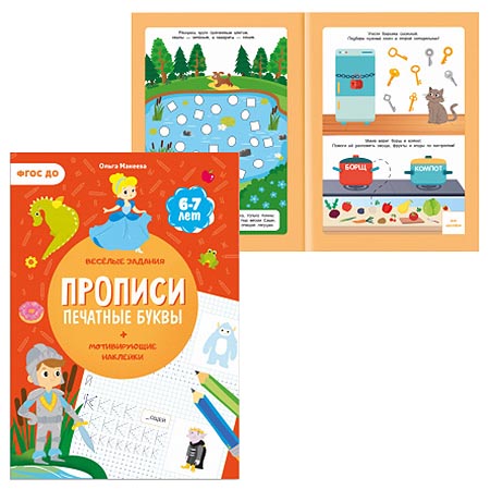 Прописи " ГеоДом " А4 12л с наклейками Учимся весело. Печатные буквы, обложка- мелованный картон