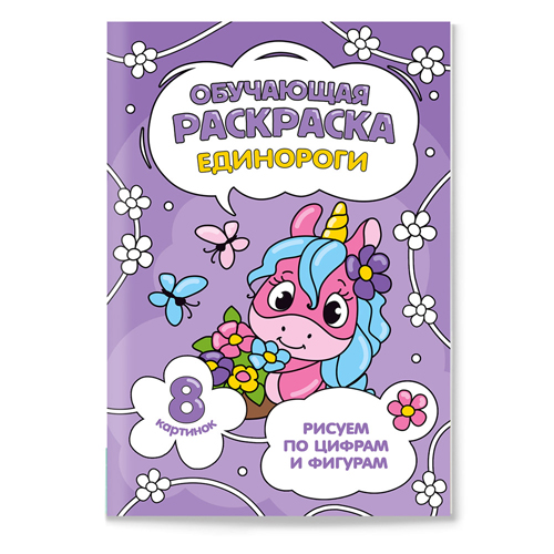 Раскраска по цифрам и фигурам" ГеоДом " А5 8л Обущающая раскраска Единороги, обложка- мелованный картон