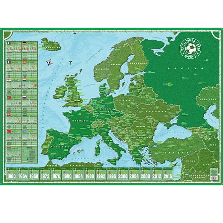 Карта настольная " Геоцентр " Футбольная Европы 58*41см, пакетная ламинация, пленка 80-100мкр