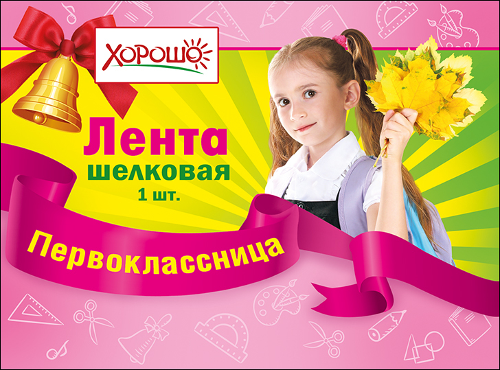 Лента шелковая розовая "ПЕРВОКЛАССНИЦА"
