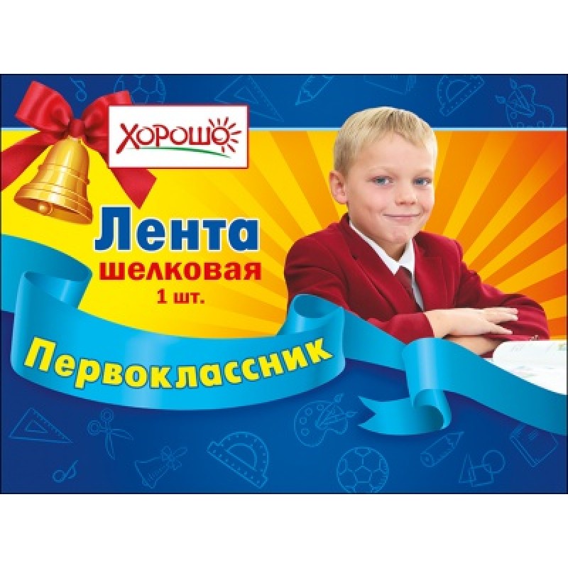 Лента шелковая синяя "ПЕРВОКЛАССНИК"