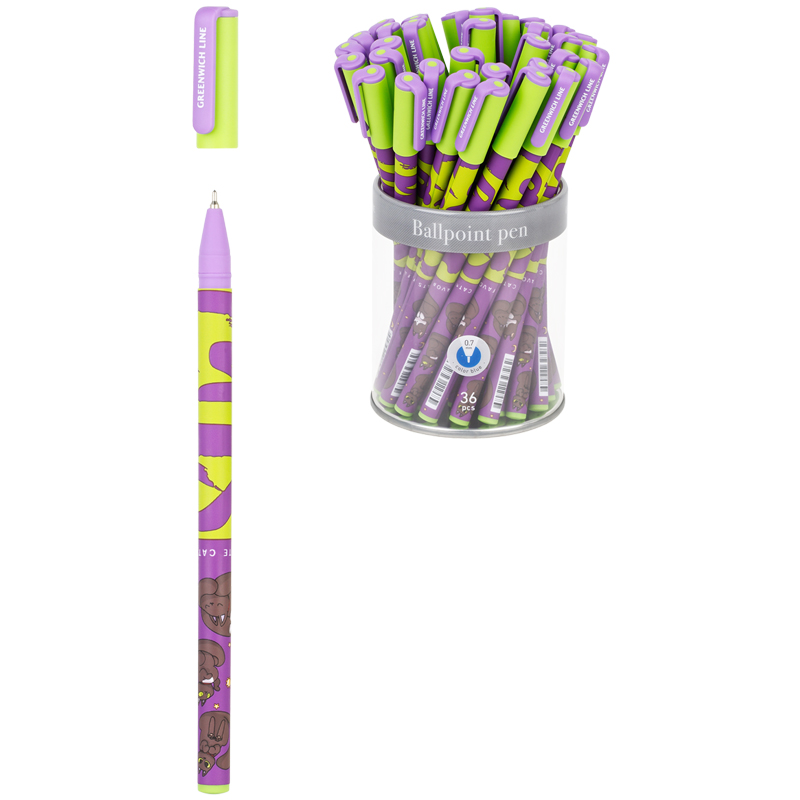 Ручка шариковая Greenwich Line "Cats" синяя, 0,7мм, игольчатый стержень, грип, софт-тач