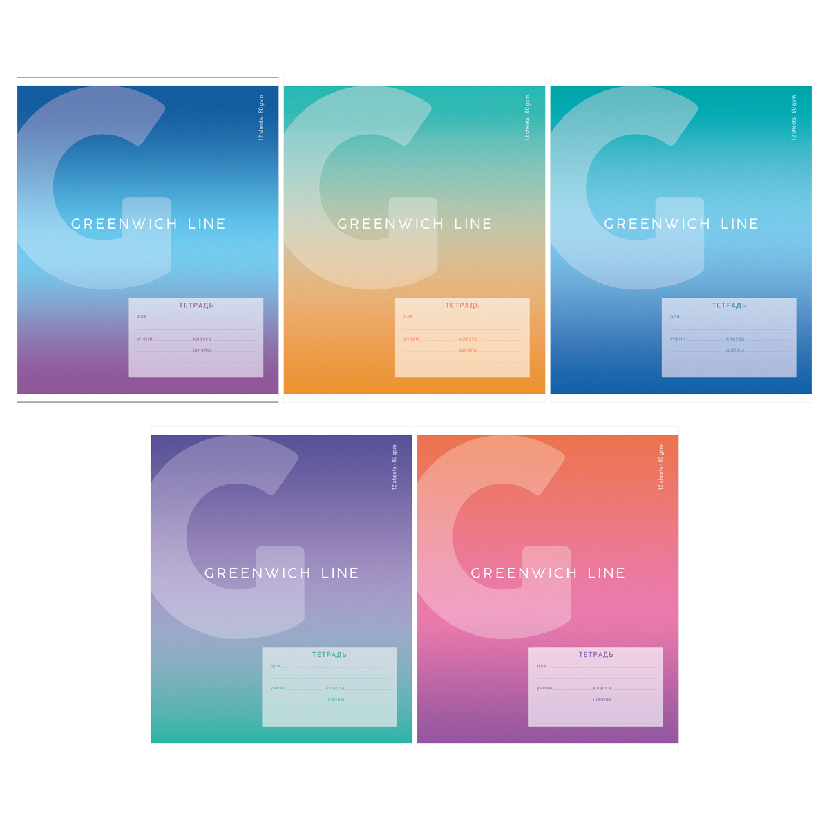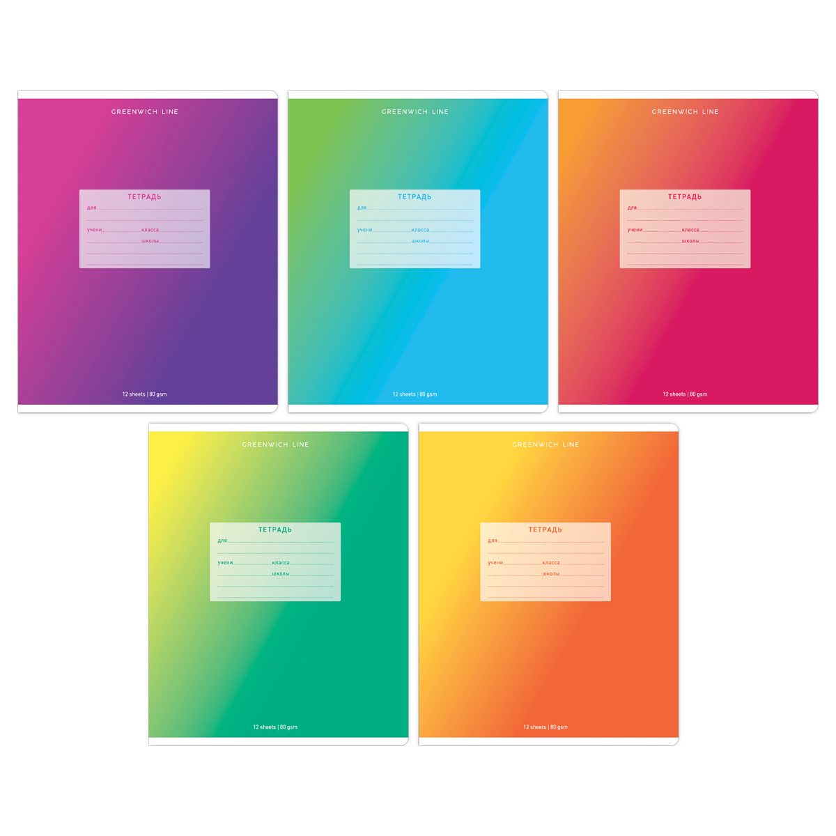 Тетрадь 12л., клетка Greenwich Line "Gradient", УФ-лак, 80г/м2