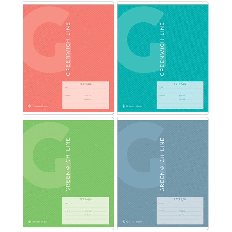 Тетрадь 12л., частая косая линия Greenwich Line. Серия "Color theory", 80г/м2