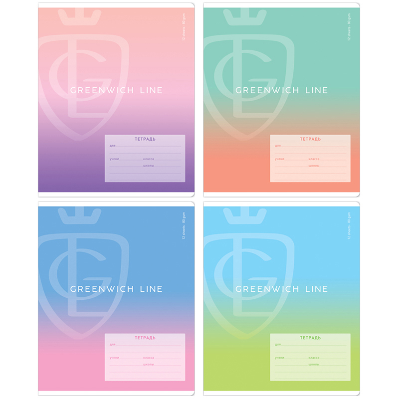 Тетрадь 12л., клетка Greenwich Line "Color gradient", 80г/м2