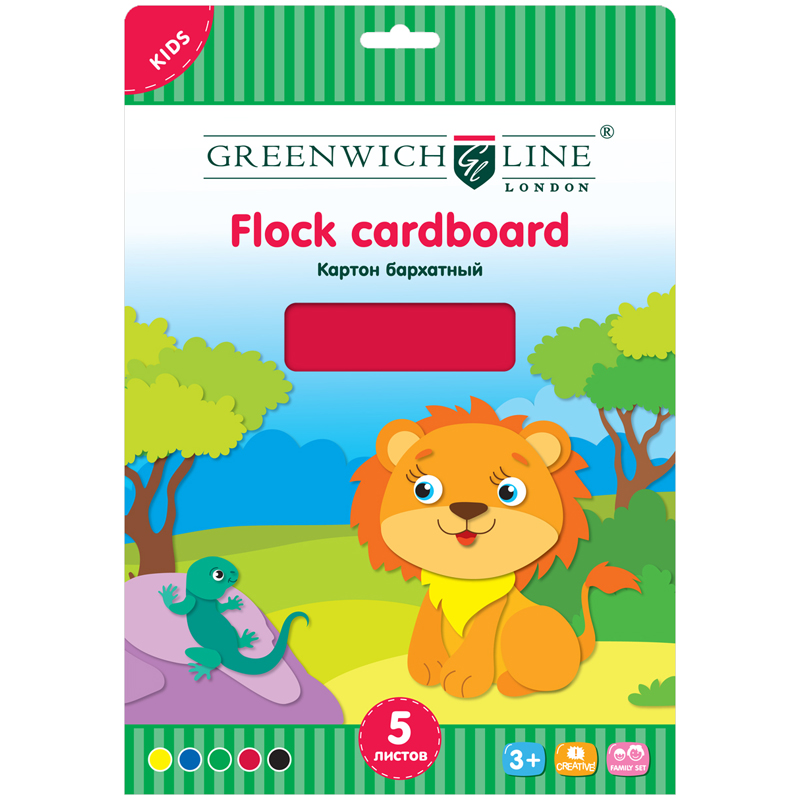 Картон бархатный A4, Greenwich Line, 5л., 5цв., в папке с европодвесом