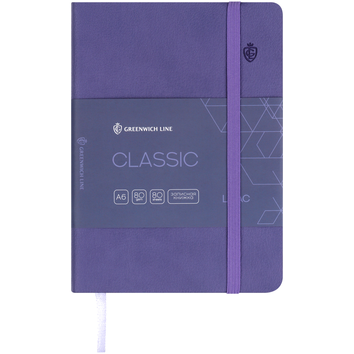 Записная книжка А6 80л. ЛАЙТ, кожзам, Greenwich Line "Classic. Lilac", с резинкой, фактурное тиснение, блок в клетку