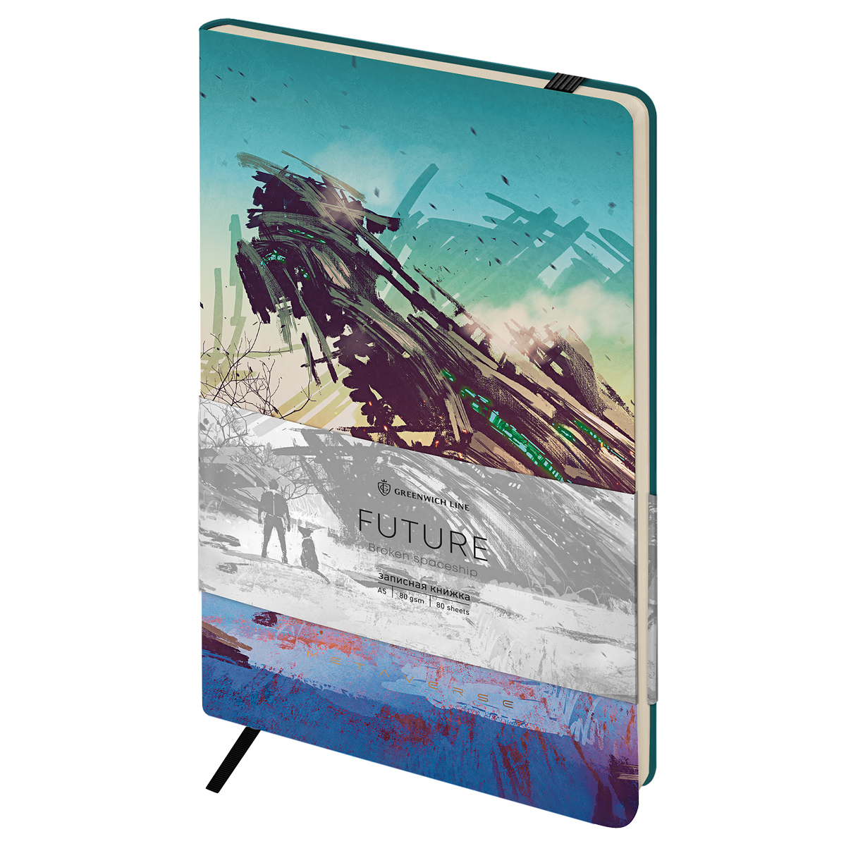 Записная книжка А5 80л. ЛАЙТ, кожзам, Greenwich Line "Future. Broken spaceship", с резинкой, тиснение фольгой, блок в линию