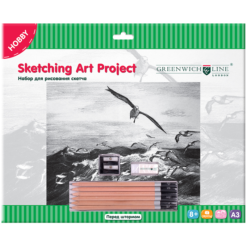 Набор для рисования скетча Greenwich Line "Перед штормом", A3, карандаши, ластик, точилка, картон
