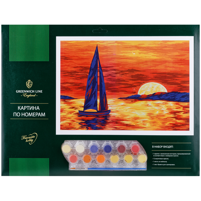 УЦЕНКА-Картина по номерам Greenwich Line "Закат" A3, с акриловыми красками, картон, европодвес