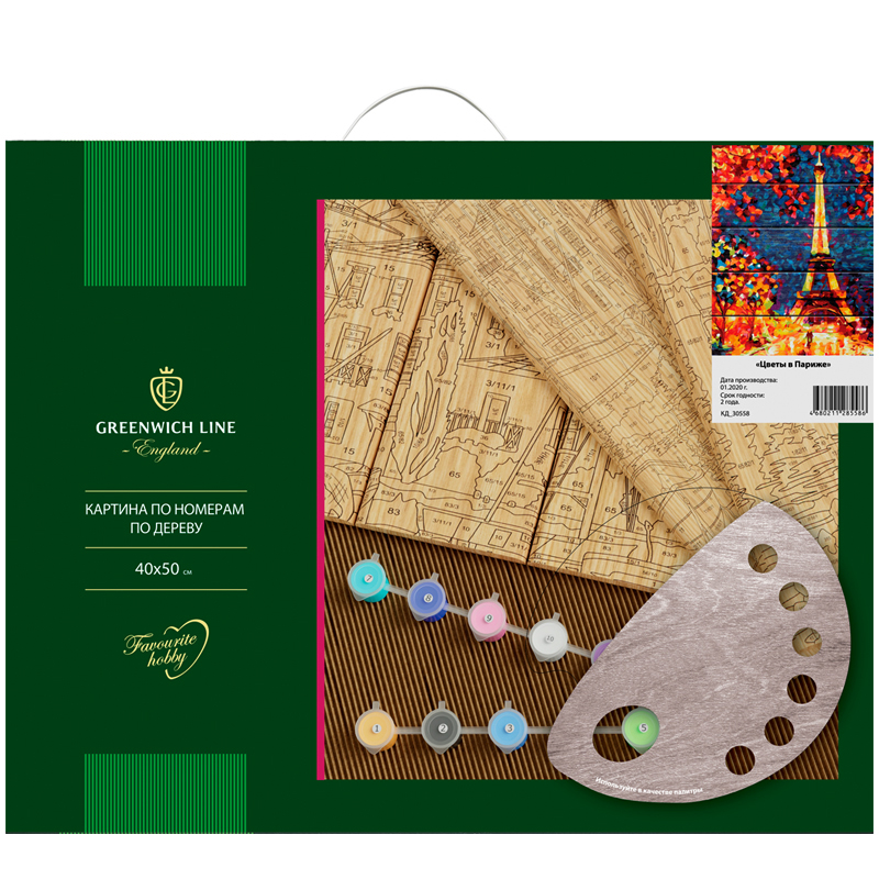 УЦЕНКА-Набор для раскрашивания по номерам (по дереву) Greenwich Line "Цветы в Париже", 40*50см