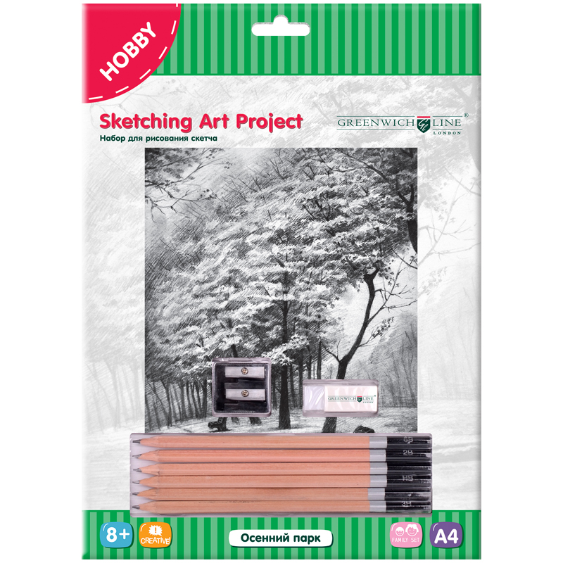 Набор для рисования скетча Greenwich Line "Осенний парк", A4, карандаши, ластик, точилка, картон