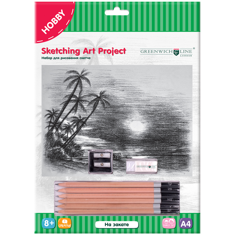 Набор для рисования скетча Greenwich Line "На закате", А4, карандаши, ластик, точилка, картон