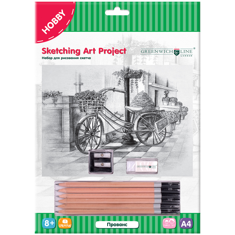 Набор для рисования скетча Greenwich Line "Прованс", A4, карандаши, ластик, точилка, картон