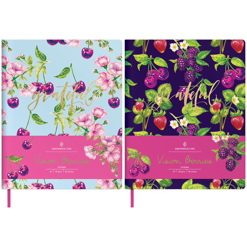 Тетрадь 80л. А5, клетка, ЛАЙТ, кожзам, Greenwich Line "Vision.Berries", тон. блок, цветной срез