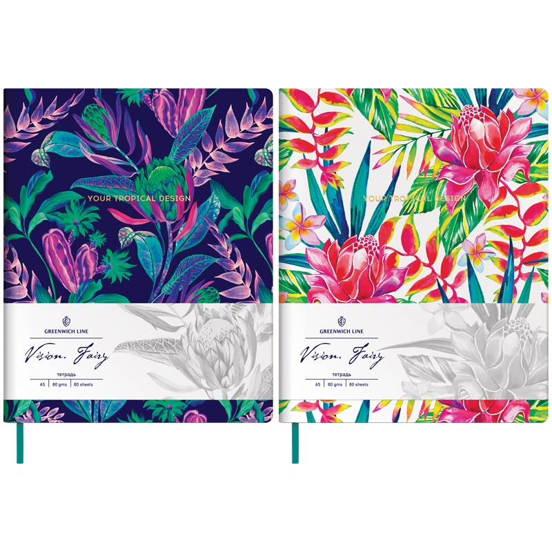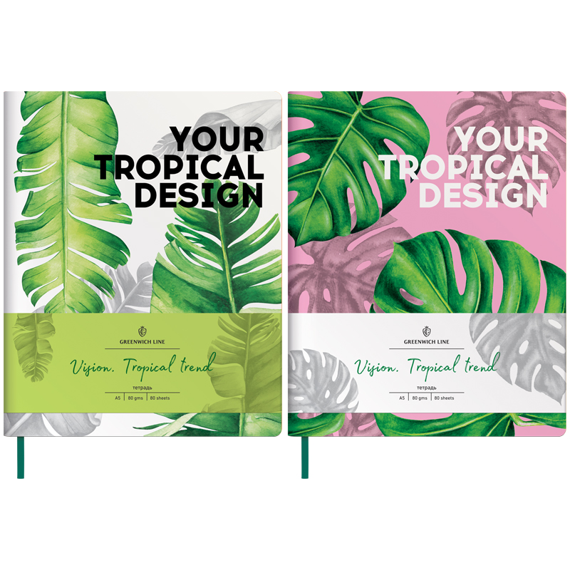 Тетрадь 80л. А5, клетка, ЛАЙТ, кожзам, Greenwich Line "Vision.Tropicaltrend", тон. блок, цветной срез