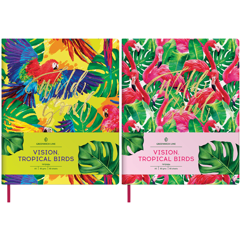 Тетрадь 80л. А5, клетка, ЛАЙТ, кожзам, Greenwich Line "Vision.Tropicalbirds", тон. блок, цв. срез