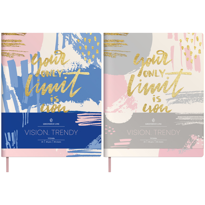 Тетрадь 80л. А5, клетка, ЛАЙТ, кожзам, Greenwich Line "Vision.Trendy", тон. блок, цветной срез
