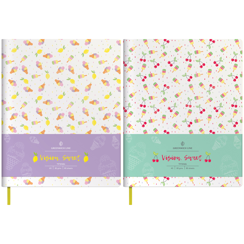 Тетрадь 80л. А5, клетка, ЛАЙТ, кожзам, Greenwich Line "Vision.Sweet", тон. блок, цветной срез