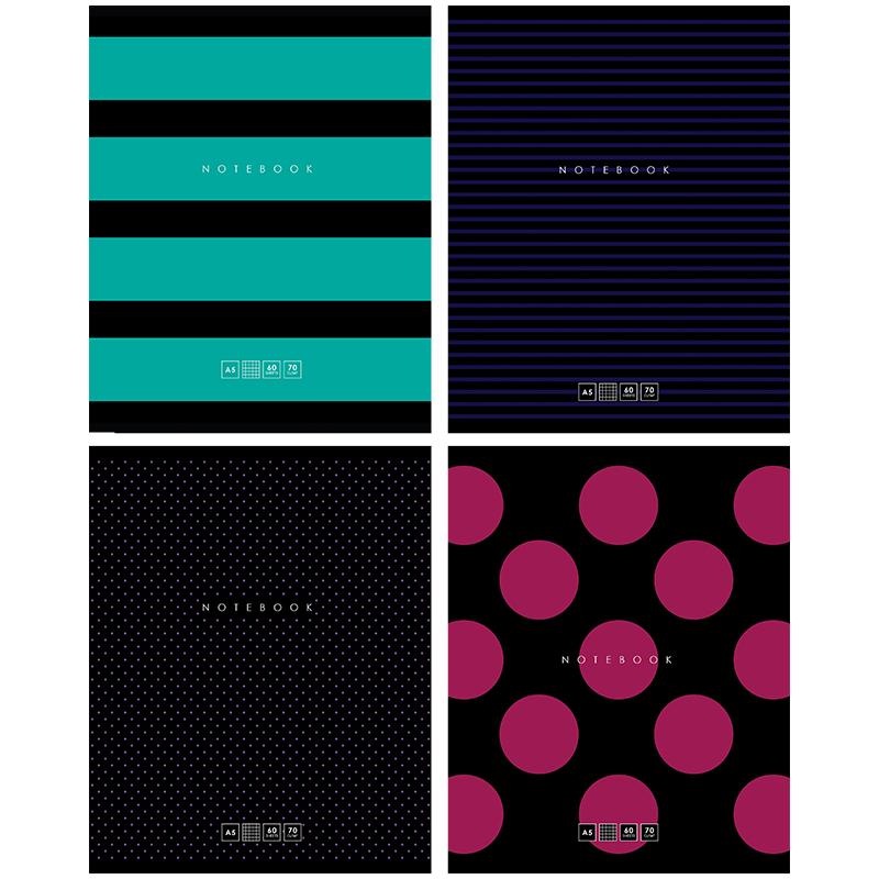 Тетрадь 60л., А5, клетка Greenwich Line "In black", матовая ламинация, выборочный УФ-лак, 70г/м2