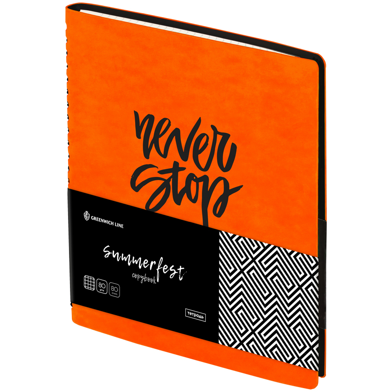 Тетрадь 80л. А5, клетка, на гребне, ЛАЙТ, кожзам, Greenwich Line "Summerfest", неоновый оранжевый