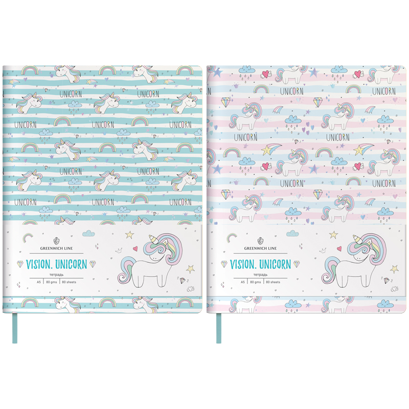 Тетрадь 80л. А5, клетка, ЛАЙТ, кожзам, Greenwich Line "Vision.Unicorn", тон. блок, цв. срез