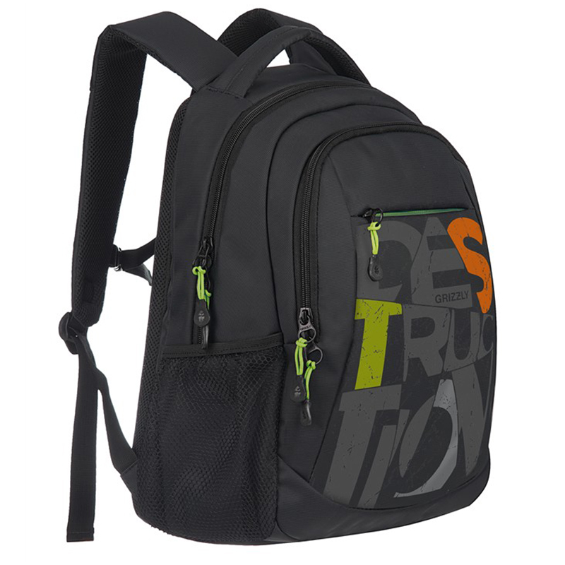 Рюкзак Grizzly, 31*42*18см, 2 отделения, 3 кармана, анатомическая спинка, черный-салатовый