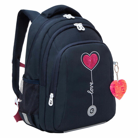 Рюкзак GRIZZLY школьный, анатомическая спинка, 3 отделения, для девочек, LOVE, 40х27х20 см, RG-361-2/3