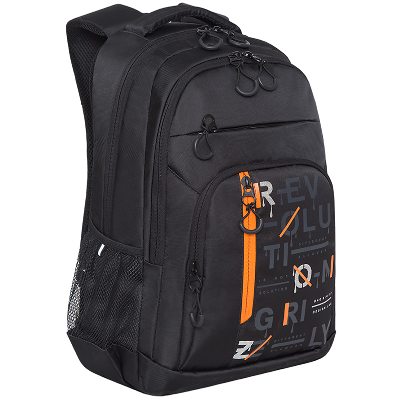 Рюкзак Grizzly, 32*47*17см, 2 отделения, 5 карманов, анатомическая спинка, черный-оранжевый