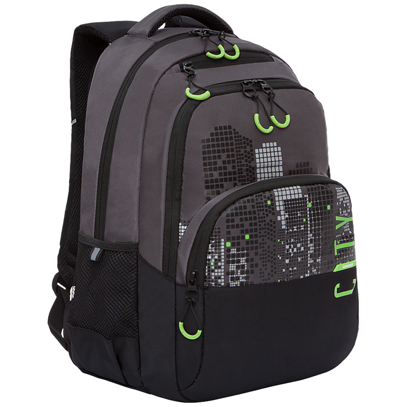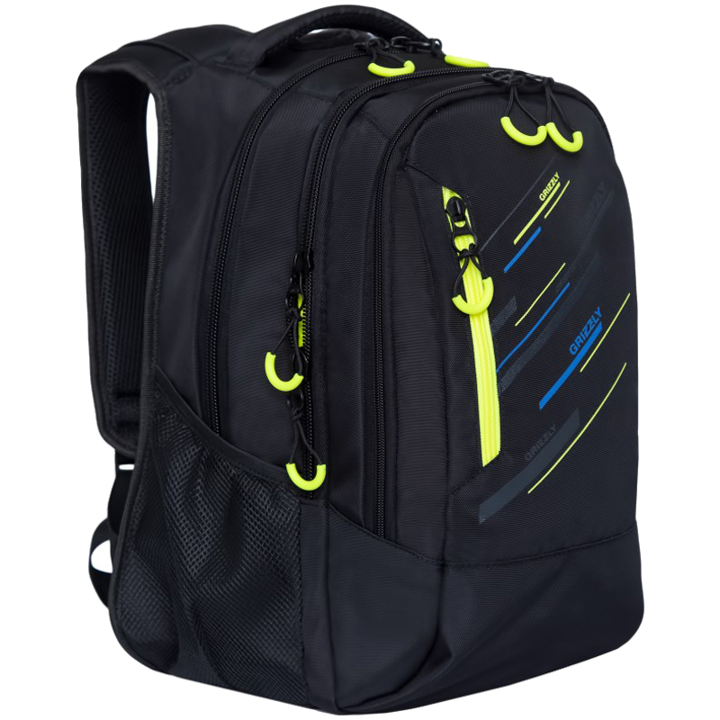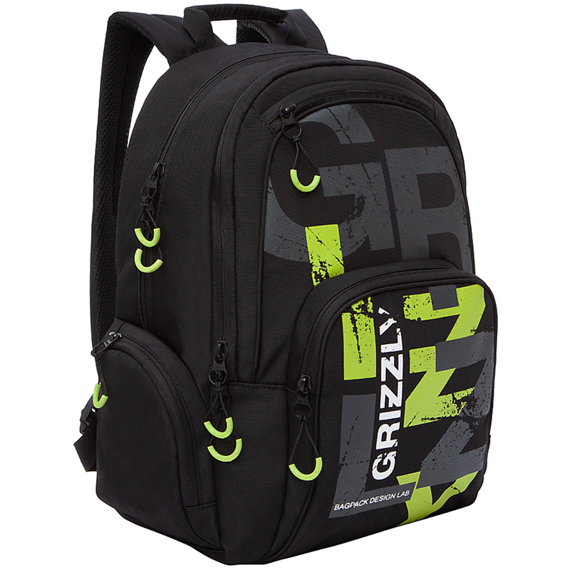 Рюкзак Grizzly, 31*43*20см, 3 отделения, 3 кармана, анатомическая спинка, черный-салатовый