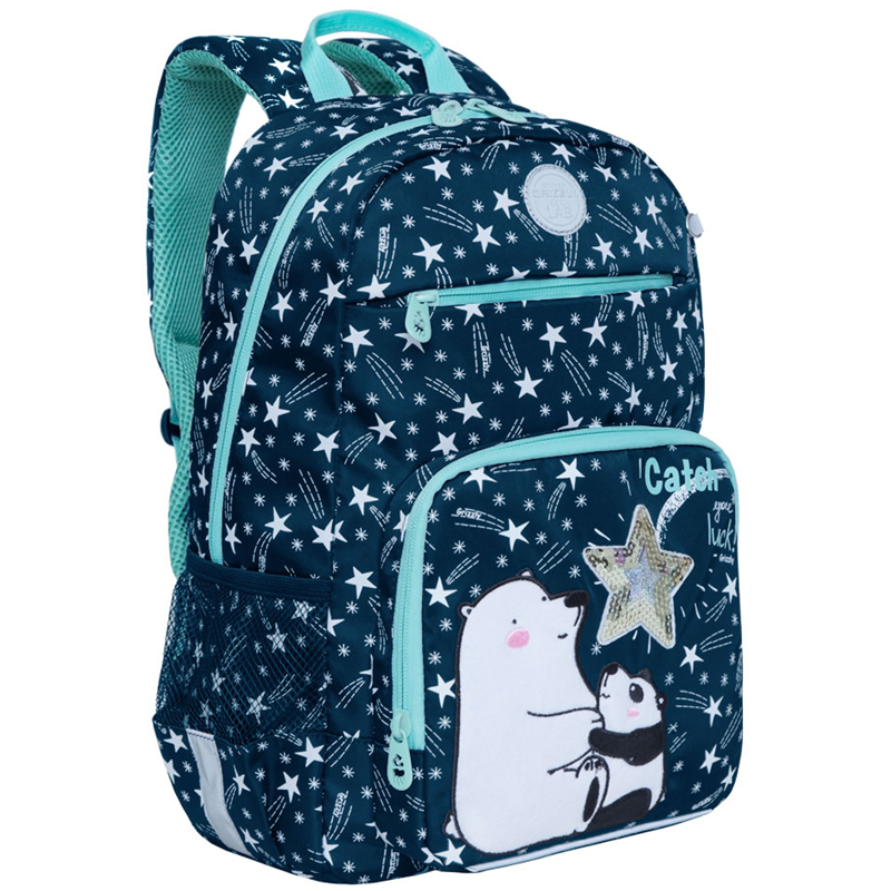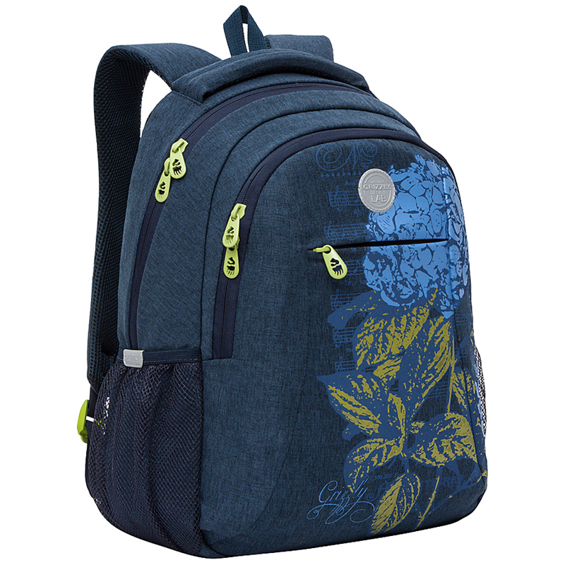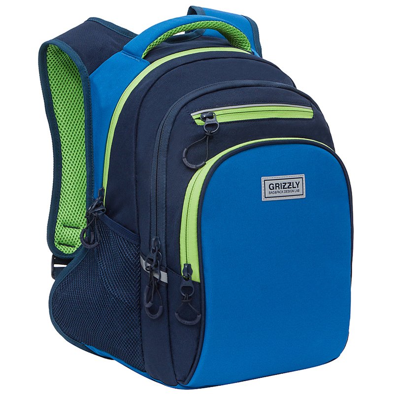 Рюкзак Grizzly, 26*38*20см, 2 отделения, 4 кармана, анатомическая спинка, синий-салатовый