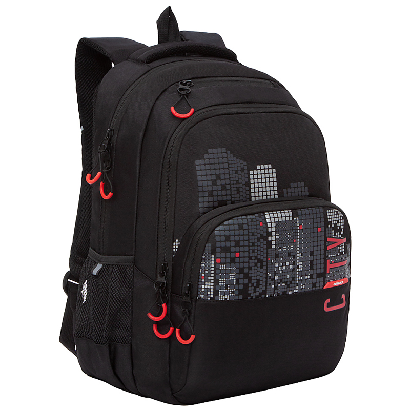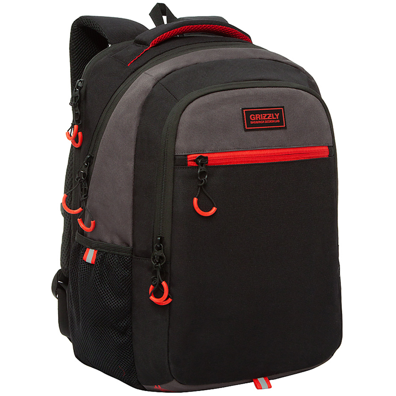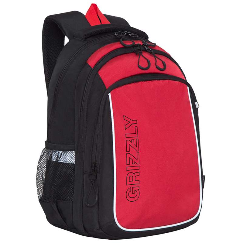 Рюкзак Grizzly, 27*41*20см, 3 отделения, 2 кармана, анатомическая спинка, черный-красный