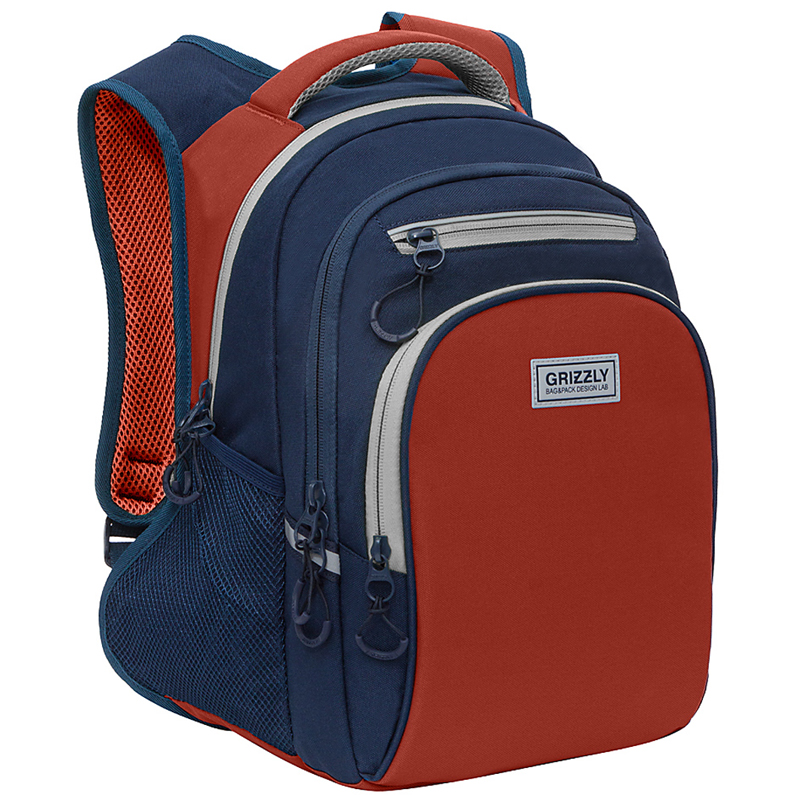 Рюкзак Grizzly, 26*38*20см, 2 отделения, 4 кармана, анатомическая спинка, синий-терракотовый