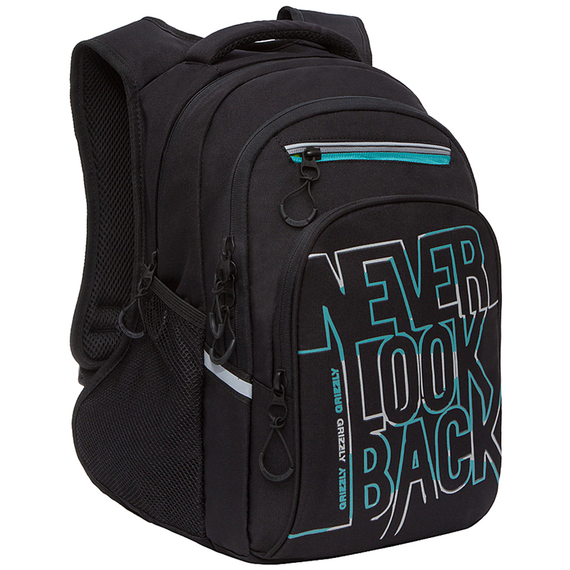 Рюкзак Grizzly, 26*38*20см, 2 отделения, 4 кармана, анатомическая спинка, черный-бирюзовый