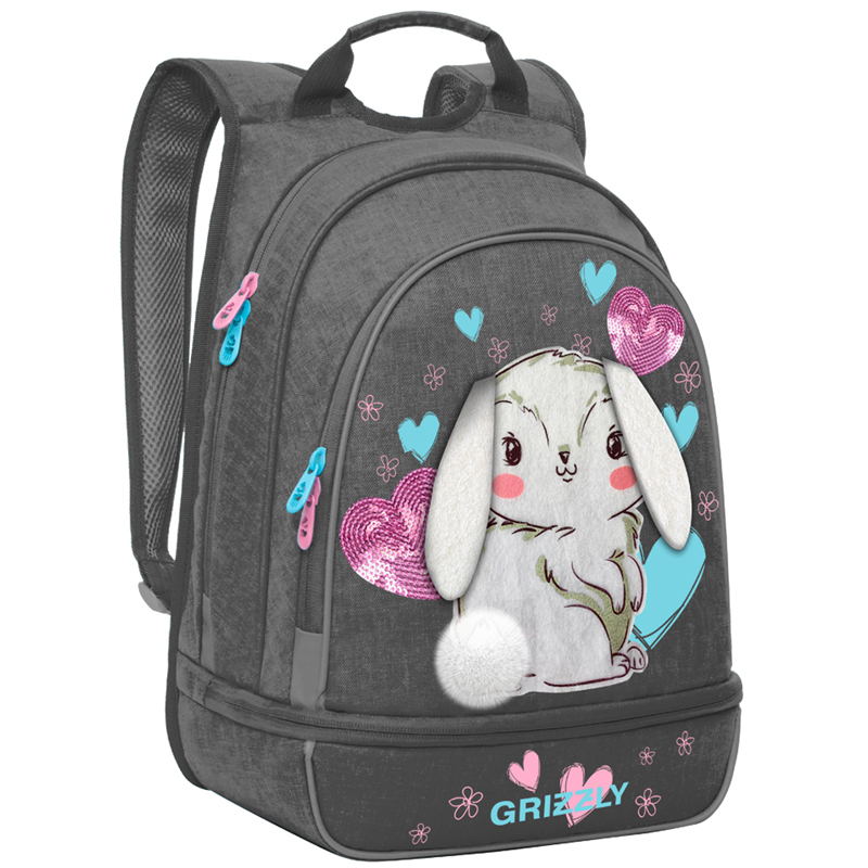 Рюкзак Grizzly, 32*45*23см, 2 отделения, 3 кармана, анатомическая спинка, черный/серый