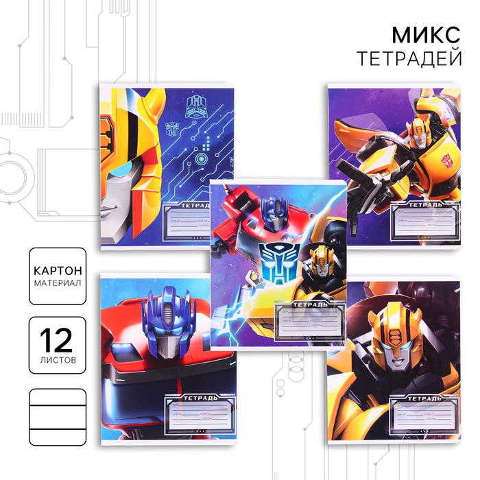 Тетрадь в линейку 12 листов, 1 сентября, 5 видов МИКС, обложка мелованный картон, Трансформеры