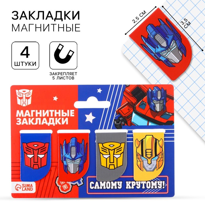 Магнитные закладки для книг, 4 шт. на открытке «Самому крутому!», Transformers