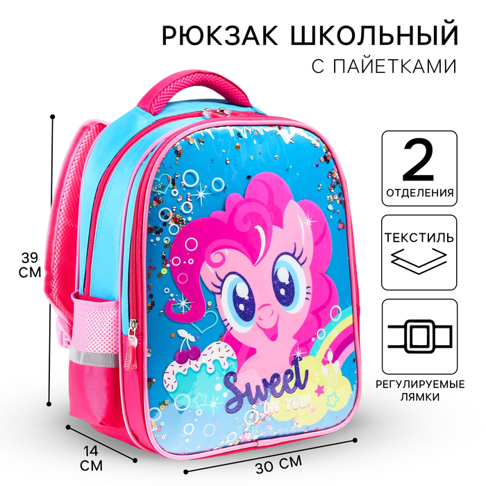Рюкзак школьный для девочки, 39 см х 30 см х 14 см "Пинки Пай", My little Pony