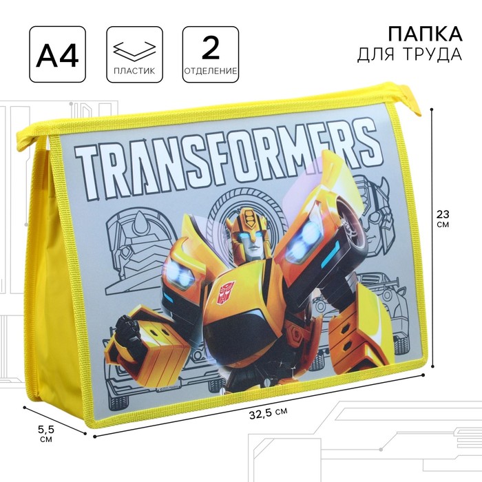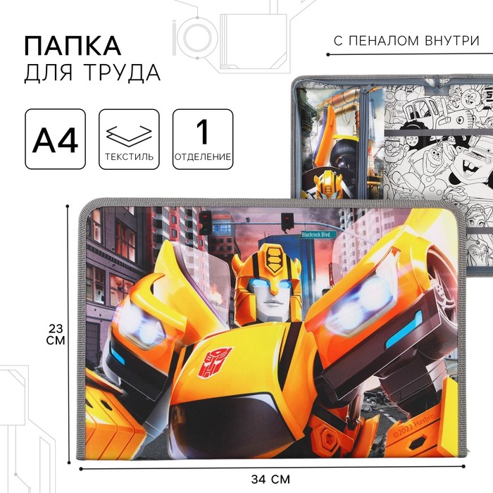 Папка для труда А4 с пеналом, на молнии, текстиль, Трансформеры
