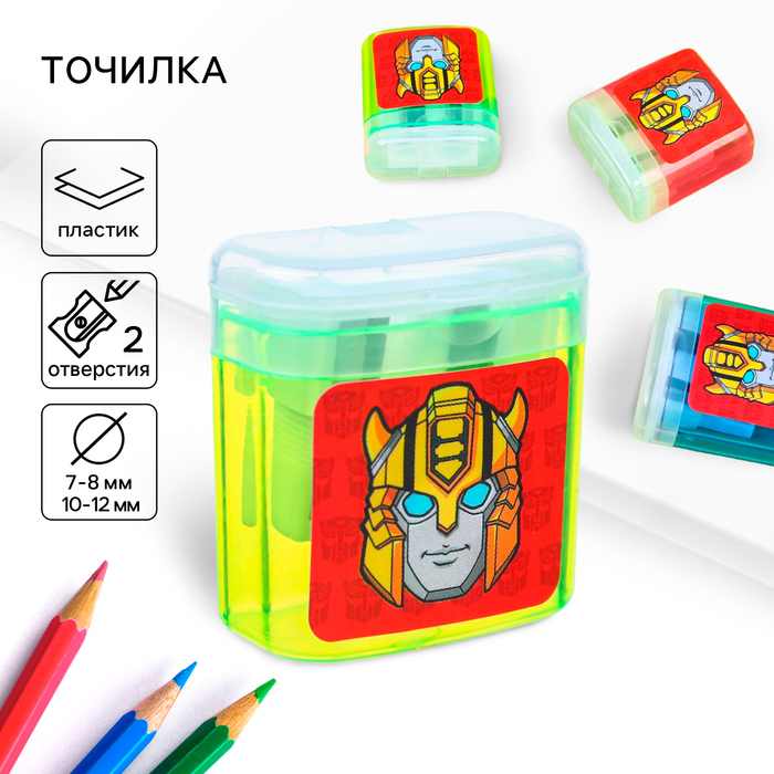 Точилка пластиковая с контейнером, двойная, МИКС, Трансформеры