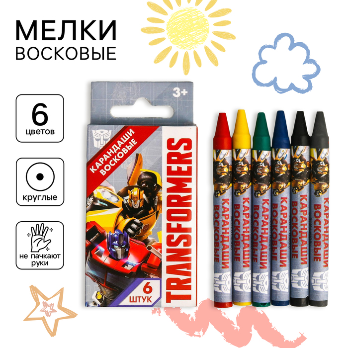 Восковые карандаши, набор 6 цветов, высота 8 см, диаметр 0,8 см, Трансформеры