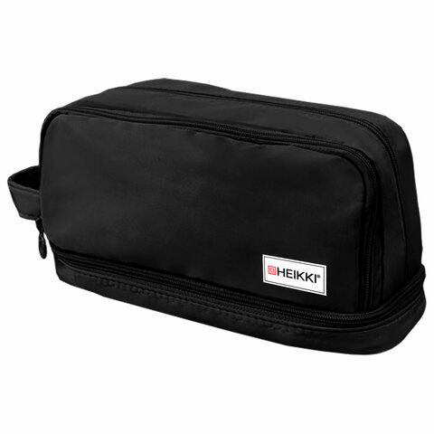 Пенал-органайзер HEIKKI (ХЕЙКИ) с ручкой, значки, 2 отделения, откидная планка, 22x13х10 см, черный, 273599