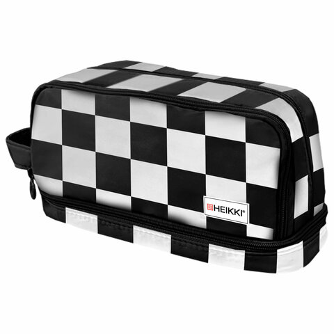 Пенал-органайзер HEIKKI (ХЕЙКИ) с ручкой, значки, 2 отделения, откидная планка, 22x13х10 см, Black&white, 273601