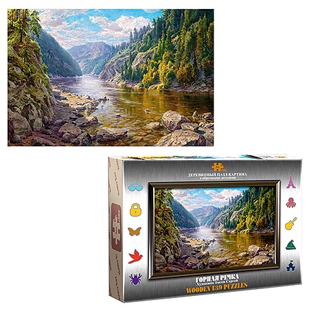 Пазлы деревянные " Hobby Day " 139элементов Горная речка 29*20см, картоннная упаковка