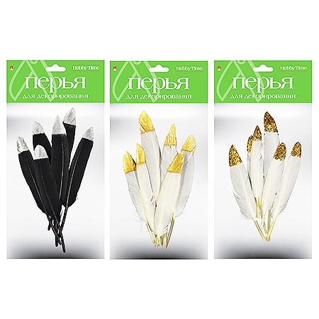 Перья для декорирования " Hobby Time " Золото/серебро, 3 вида, от 14см до 16см, набор №9